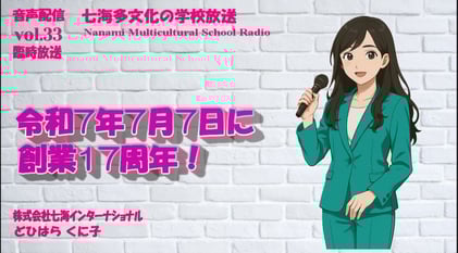 七海多文化の学校放送vol.33 臨時放送「令和7年7月7日に創業17周年を迎えました」